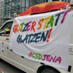 Die hier gezeigten Bilder sind entweder mit Zustimmung der fotografierten Personen (Rahmenprogramm) oder auf einer öffentlichen Veranstaltung (CSD Demo + Infostönde) entstanden. Solltet ihr euch finden, aber nicht wollen, dass euer Bild hier gezeigt wird, dann schickt bitte eine Nachricht an webmaster[at]csd-jena.de, wir werden euch umgehend unkenntlich machen oder das entsprechende Foto entfernen.